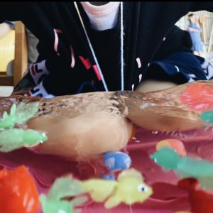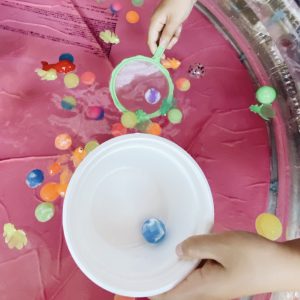 ボールすくいには金魚すくいポイを使用し、大きいボールを狙って頑張りますが重さに悪寸苦闘❗️