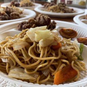 ランチタイムでは、職員が作った【焼きそば、から揚げ、野菜スープ】を