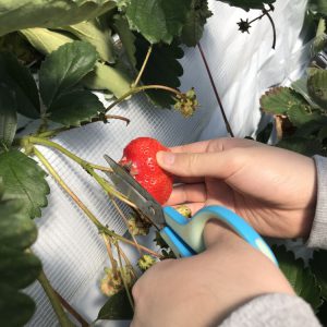 いちごの収穫は簡単そうに見えて少しコツが必要なので