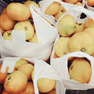 吟味しながら、お土産に持って帰るみかんを袋いっぱいに収穫しました。
