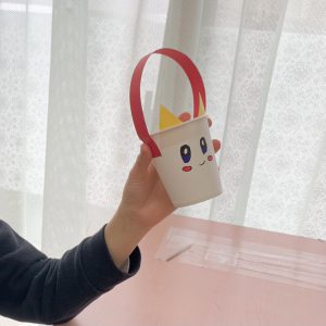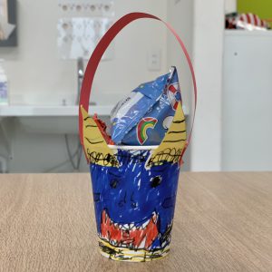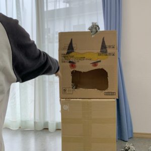 おやつの時間には鬼のお菓子入れを作りました。