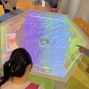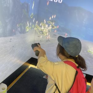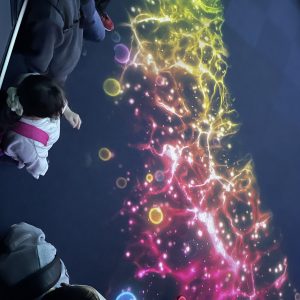 大画面に映像が流れ、床に映し出された魚が泳ぐ演出に一同大興奮!✨