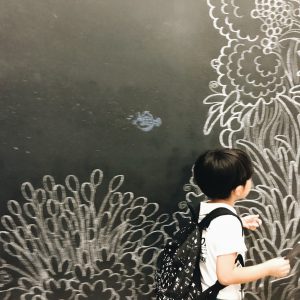 また、描かれた絵が動く不思議な壁にも夢中な様子でした ♥
