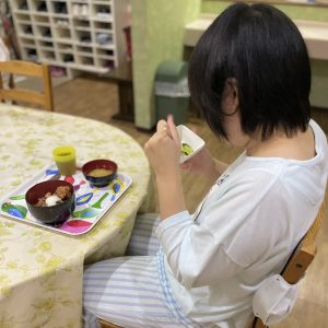 食後に自分が使ったお盆を拭き、自立に向けた取り組みも行っております。