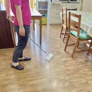 職員がお掃除をしていると「お手伝いします!」と、自ら進んで床掃除に取り組んでくれました🧹