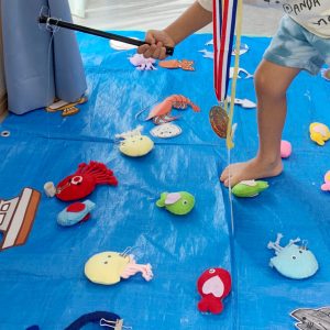 職員が手作りしたかわいいお魚を釣り上げて、目を輝かせていました😊