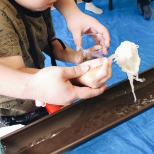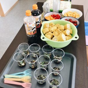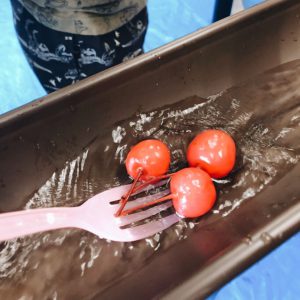上手にお箸・フォークでキャッチしており、成長を感じる場にもなりました。