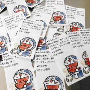 手作りのアンパンマン・博多にわかのお面をつけて行いました。