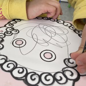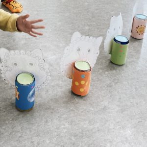 節分にちなみ、鬼のお面をそれぞれ作成して缶に張り付け