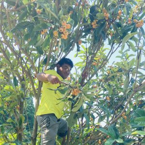 キラキラ輝いている枇杷(びわ)の木に案内して頂きました。