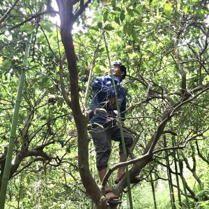 冬に収穫の時期を迎えるデコポンの摘果作業を行いました。