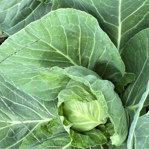 よ~くのぞいてみたら、中から丸くふっくらとしたキャベツが顔を出しました。