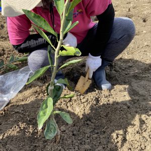 ぬかるんだ土に足をとられながらみんなで頑張って植樹をしました。