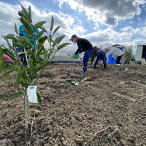 土を掘る係、苗木を持つ係、スコップで植える係に分かれて、