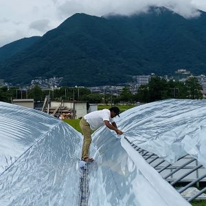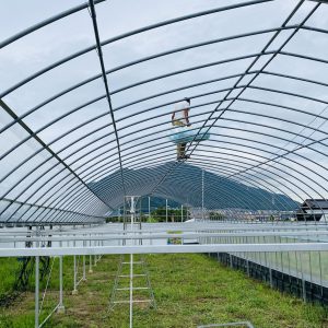 8月にハウスの建設からスタートし、骨組を組み、ビニールを張り・・・ついに完成!!